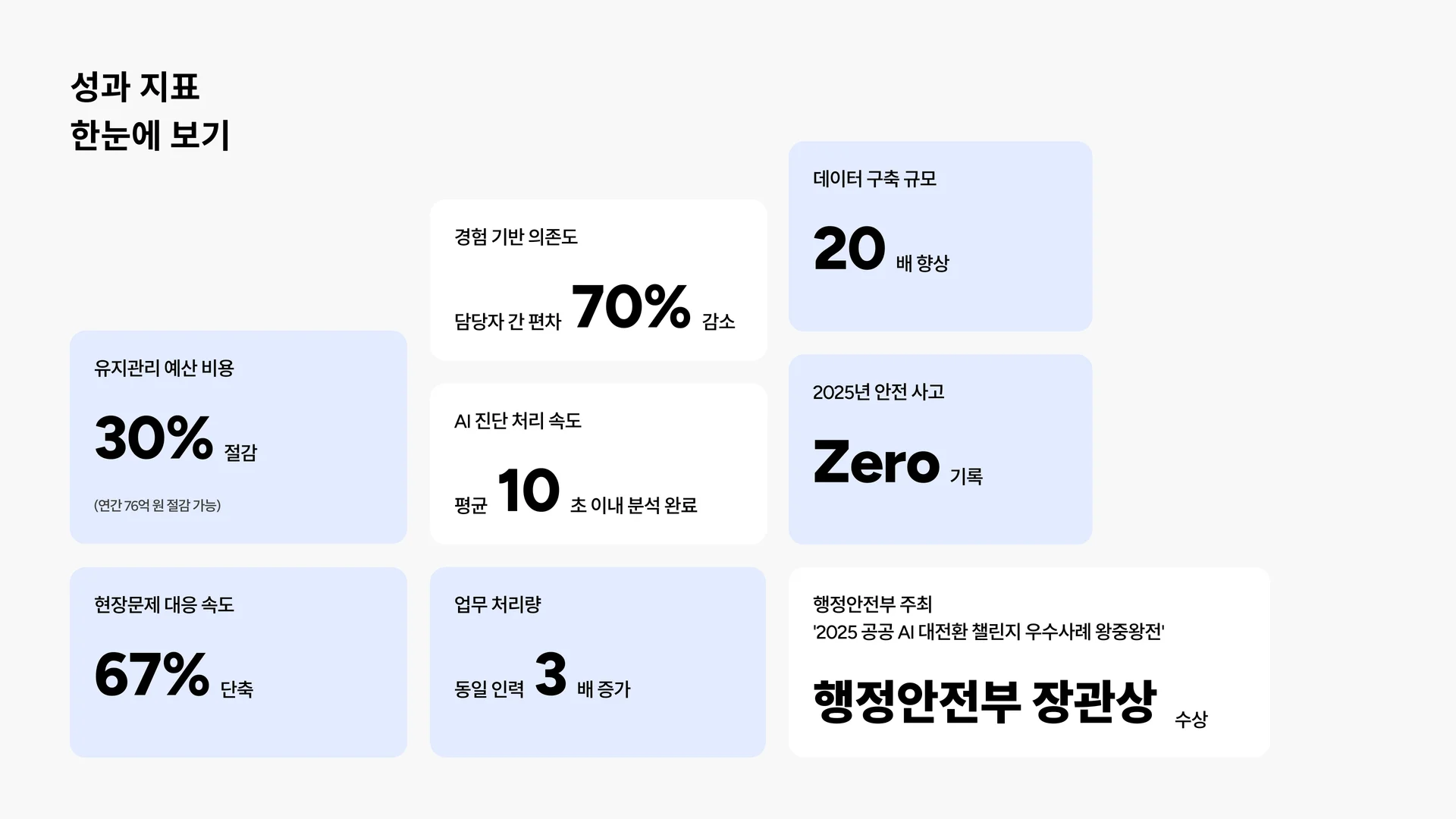 성과 홍보 | 행정안전부 주최 ‘2025 공공 AI 대전환 챌린지 우수사례 왕중왕전’에서 행정안전부 장관상 수상 |