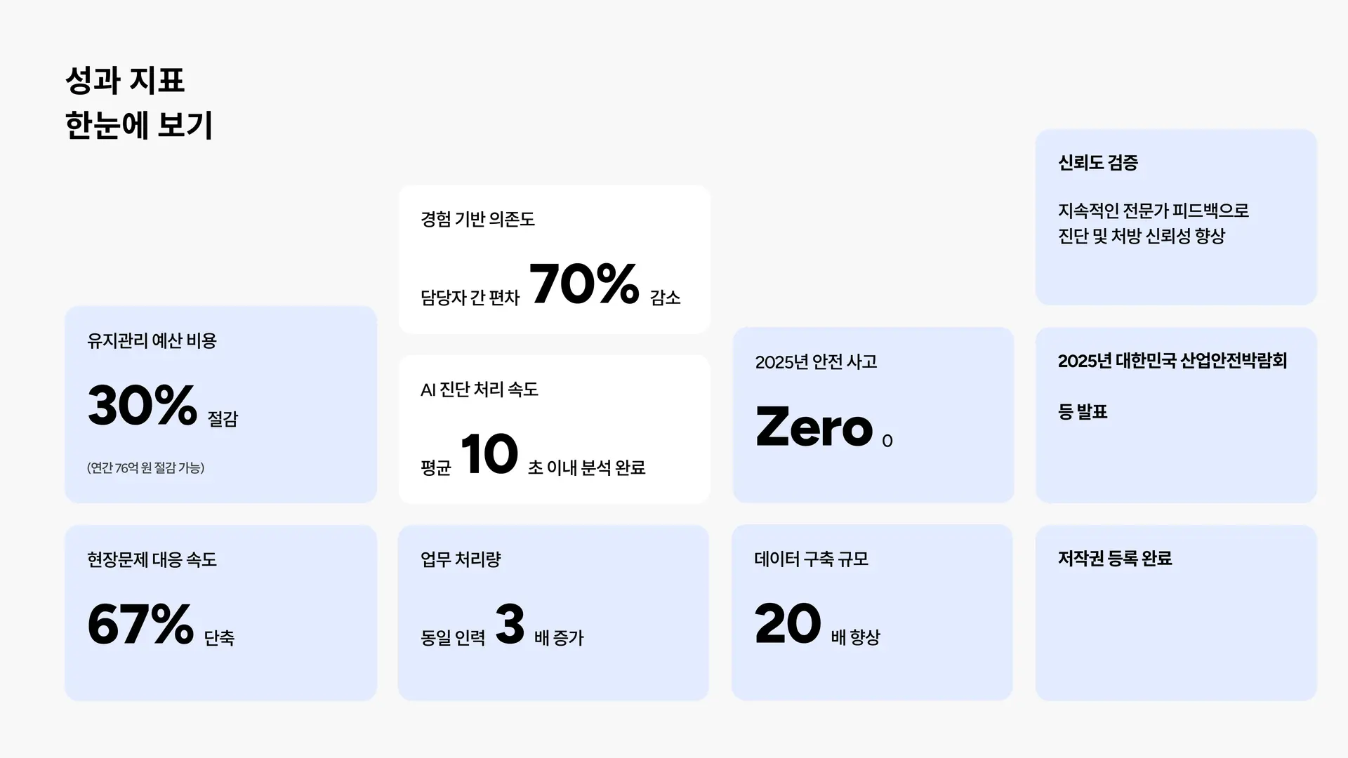 점검 신뢰성 | 담당자 경험에 의존하던 점검이 객관적·신뢰성 높은 점검으로 변화 |