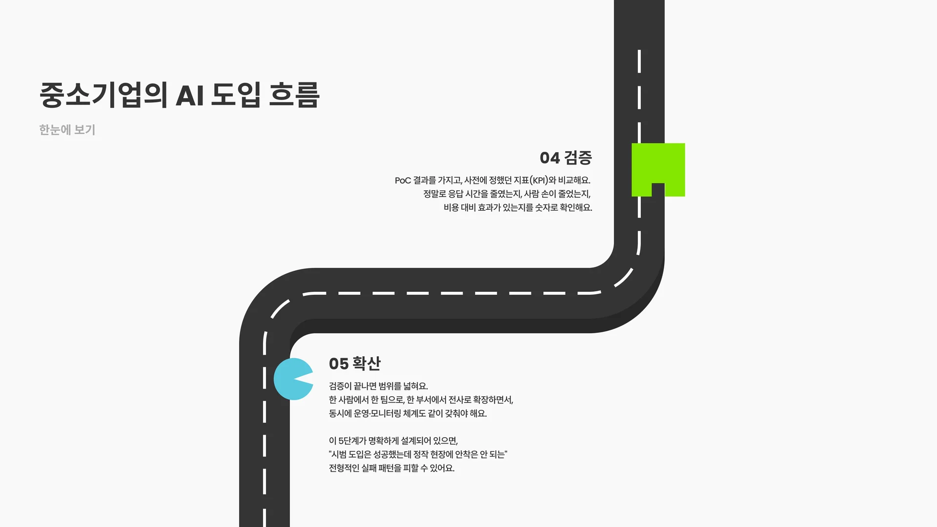 문제 정의 → 데이터 준비 → PoC → 검증 → 확산