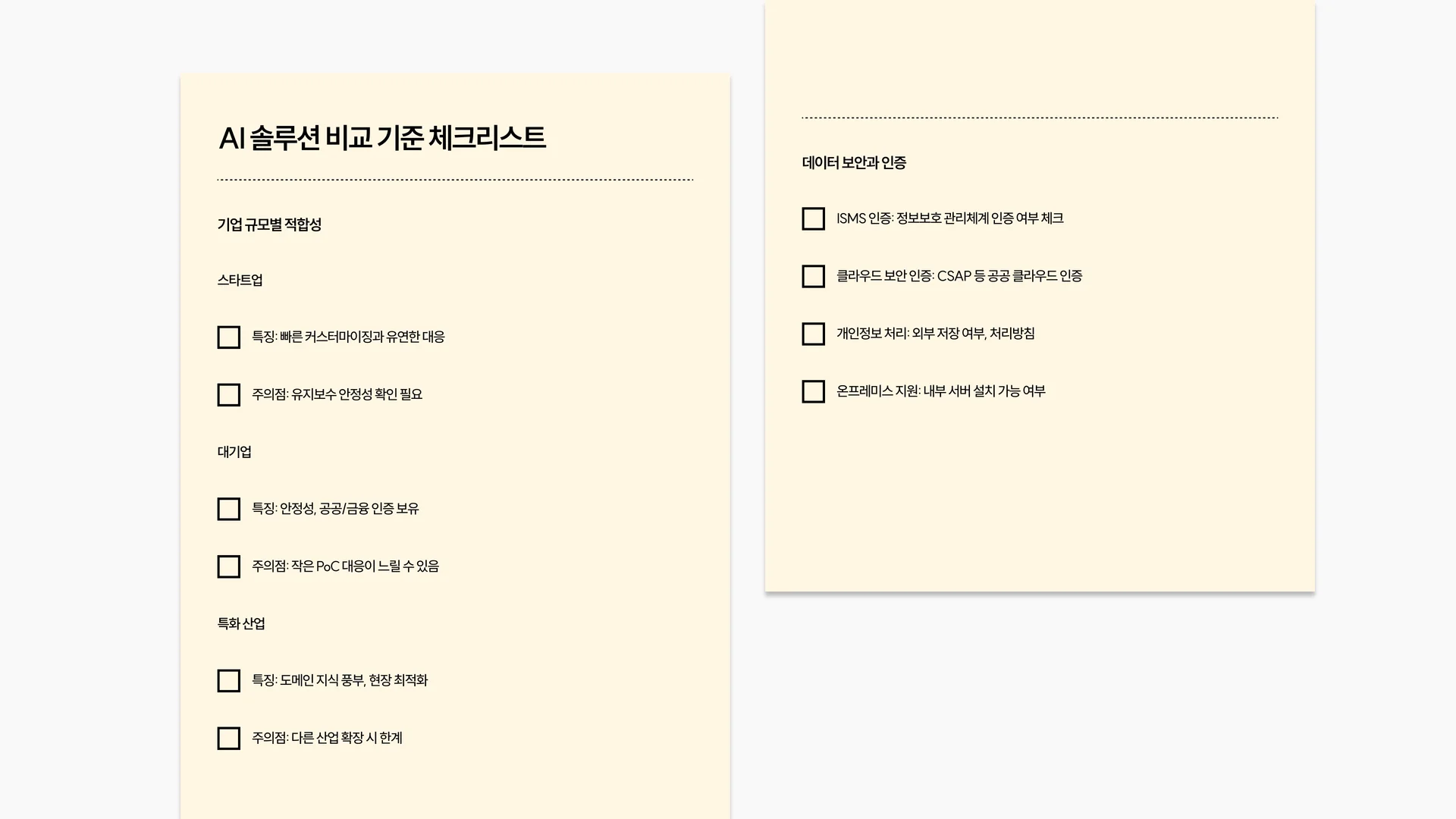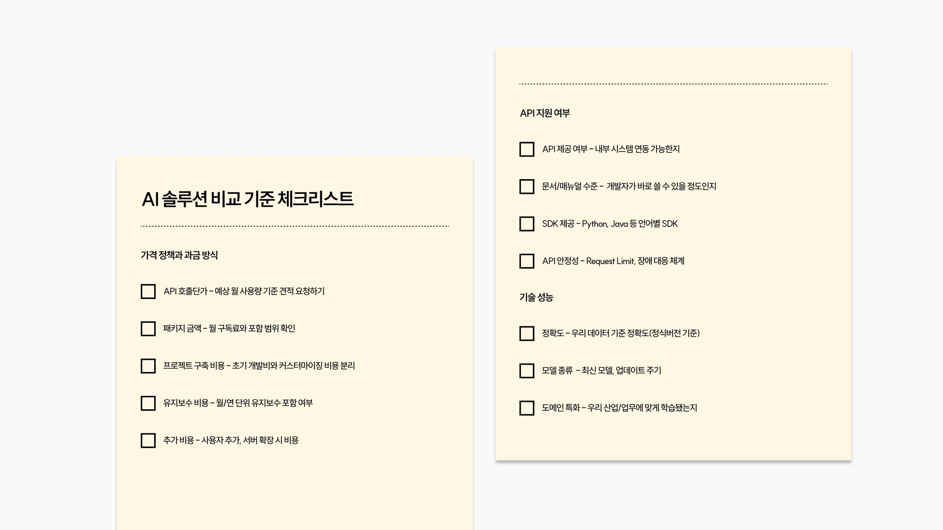 AI 솔루션 비교 기준 정리